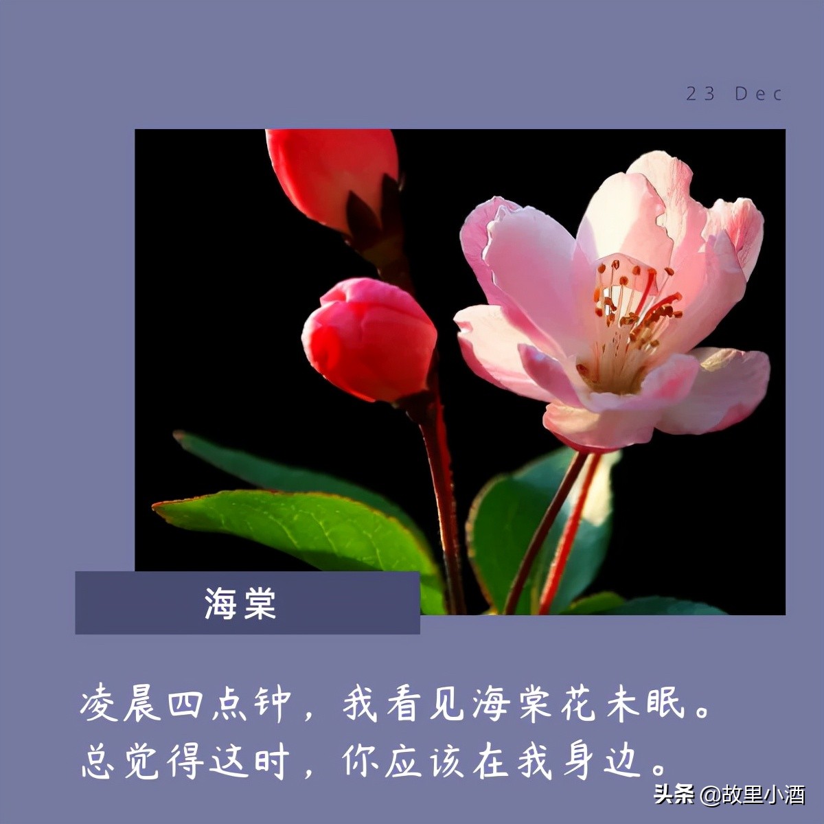 凌晨四点钟,我看见海棠花未眠。总觉得这时,你应该在我身边。