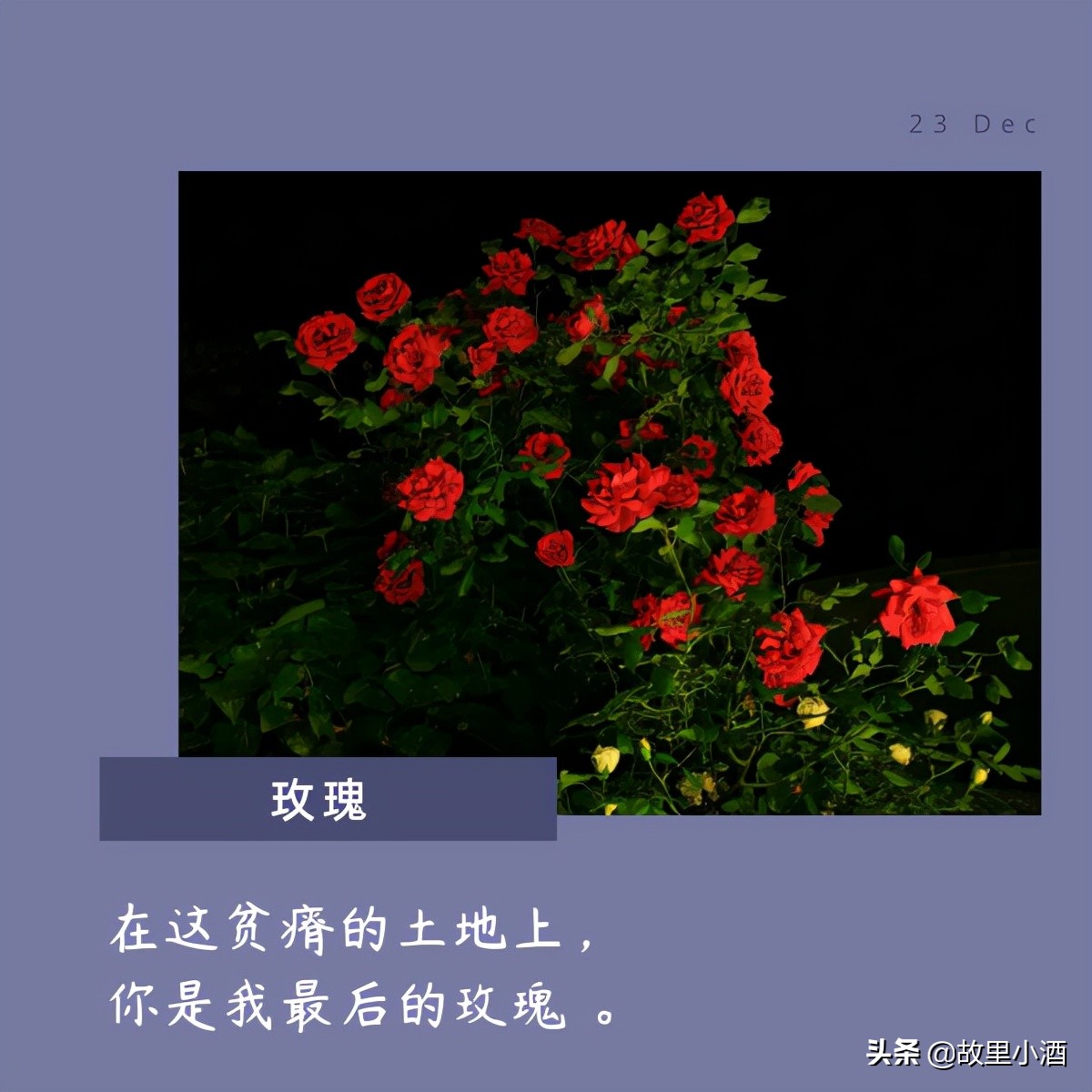 在这贫瘠的土地上,你是我最后的玫瑰 。