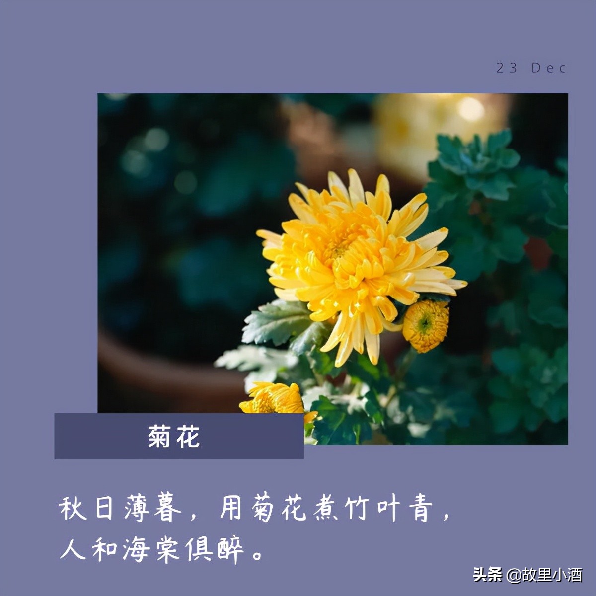 秋日薄暮,用菊花煮竹叶青,人和海棠俱醉。