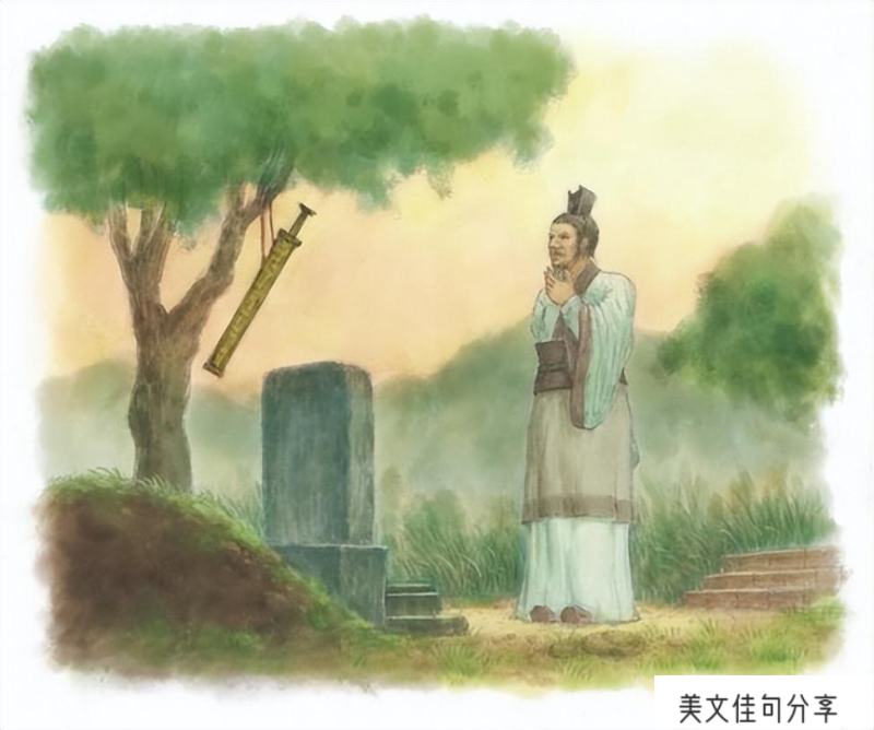 但是在他回来的时候听说徐君在不久前出访楚国进行“国事访问”时不幸暴病而亡。季札听后非常震惊并非常后悔没有完成徐君求剑的心愿,季札没有办法,只好来到徐君的墓地,把宝剑挂在墓旁的树上。徐国的百姓知道季札的这一举动,对他恪守信用的美德赞不绝口,就连后来的孔子都尊他为圣贤。